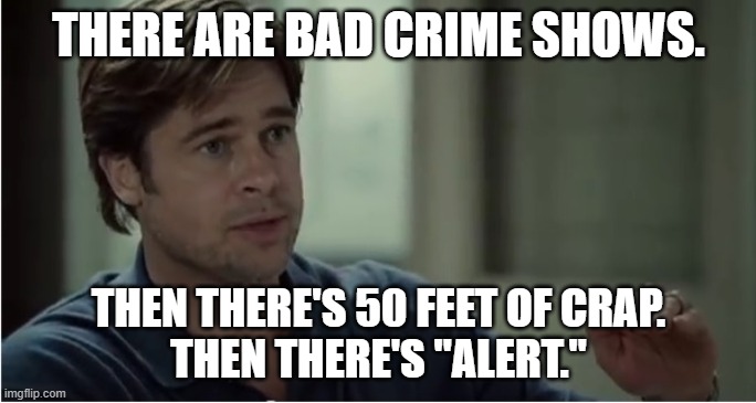 Let’s start with the bad and get it over with. Alert is one of the most godawful shows I’ve ever seen, bar none. Among crime shows, we’ll have to do the Moneyball meme to even express how horrible it was.