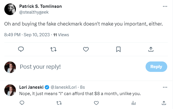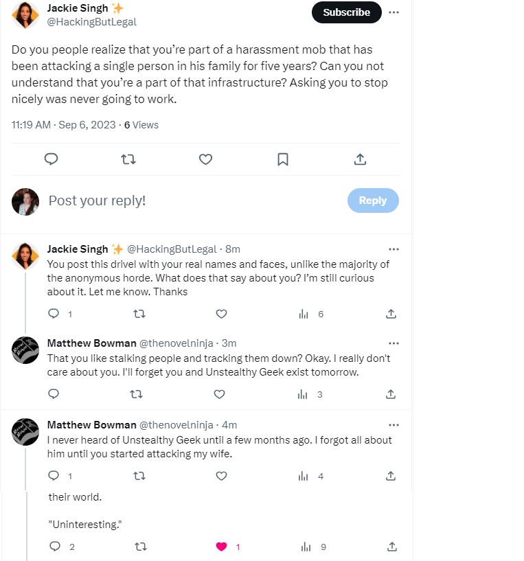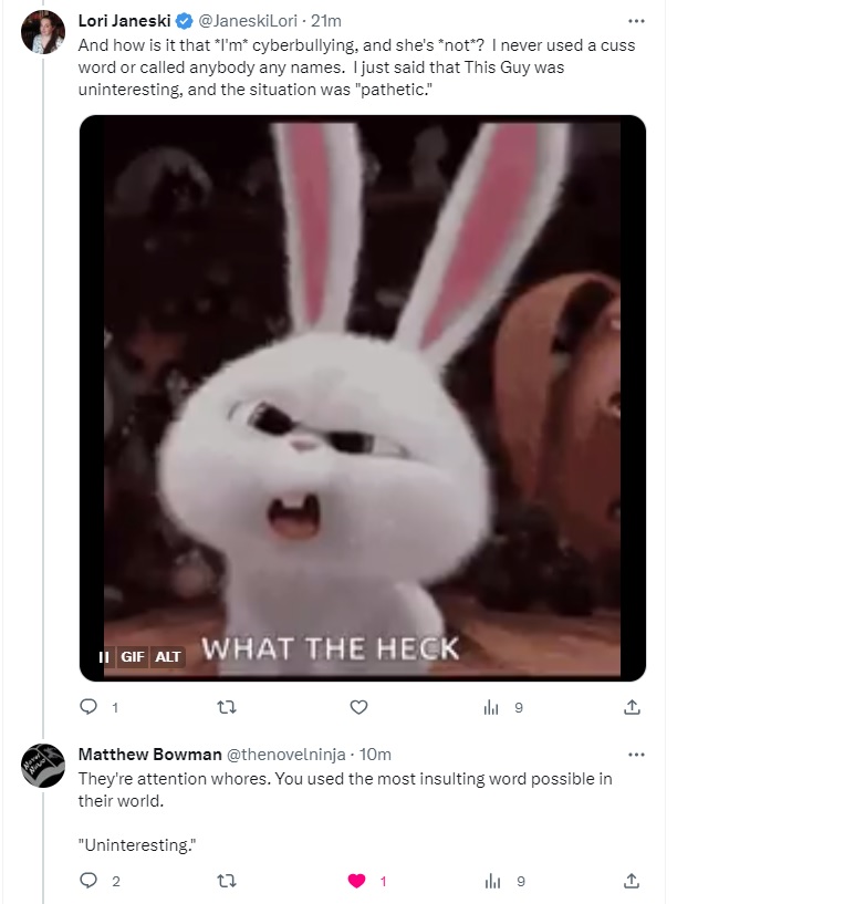 I guess saying that someone is “uninteresting” is a deathly insult to the folks who make their meager living harassing other folks on social media.