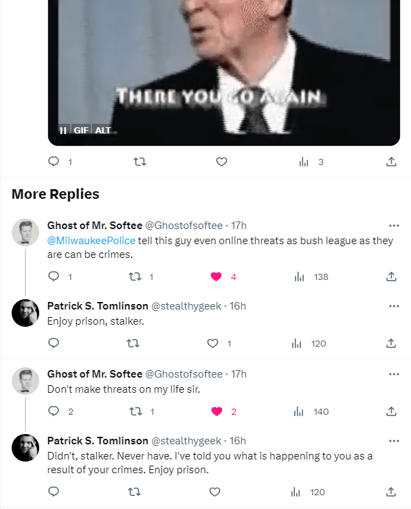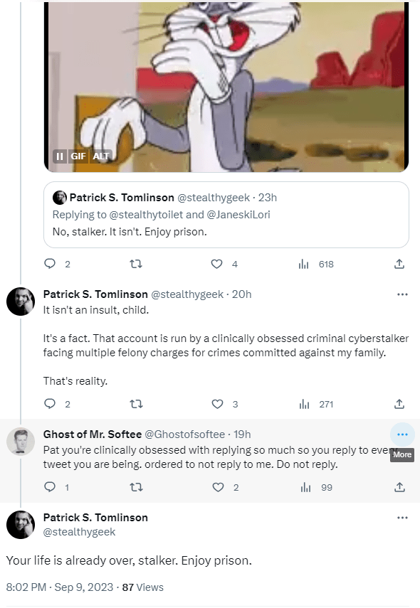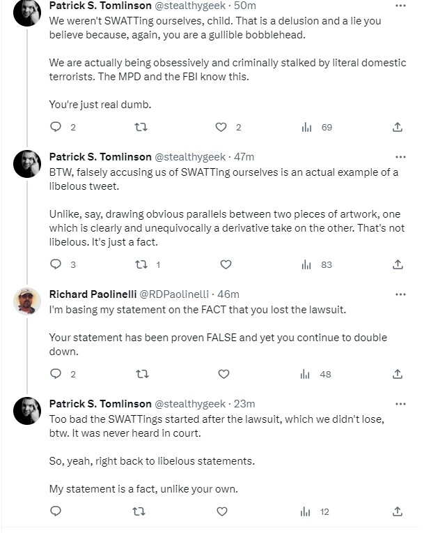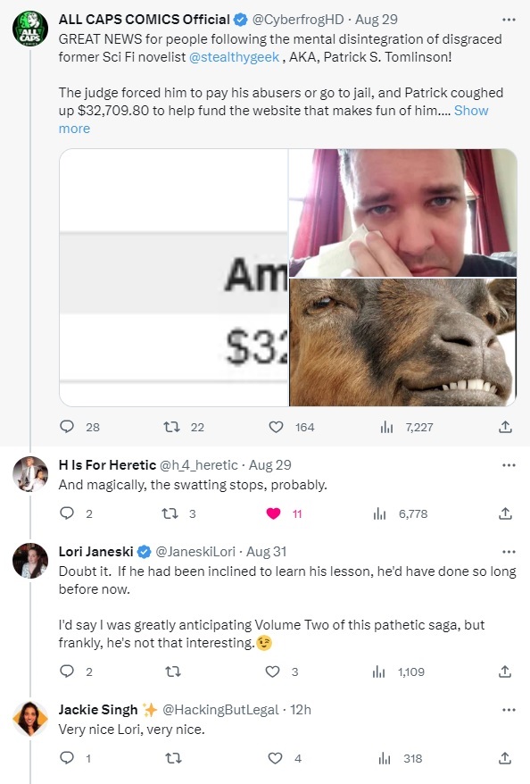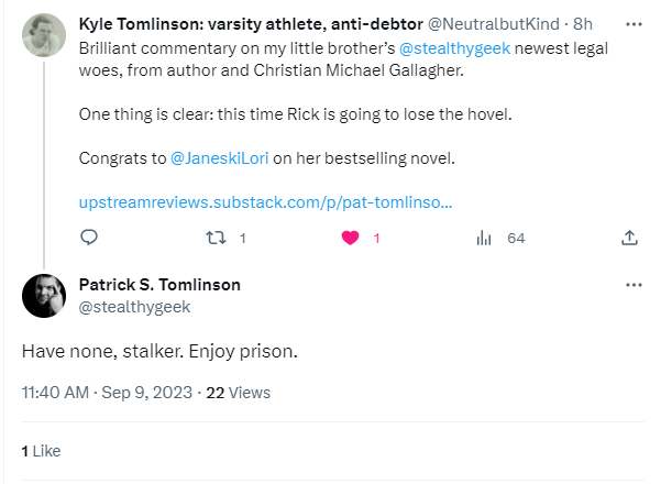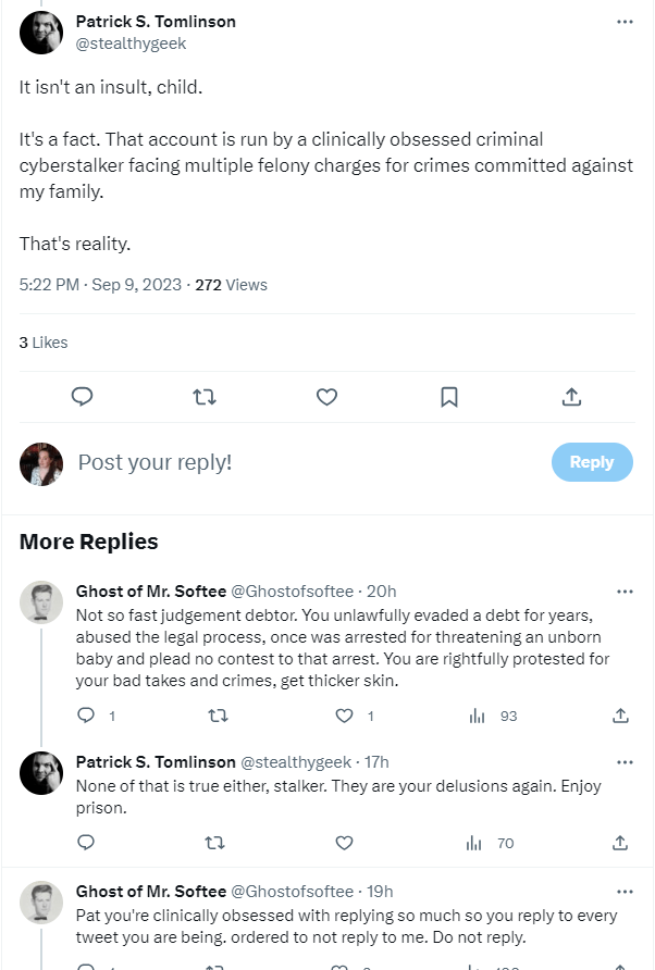 All this got started when I made a throwaway comment on a post (someone I follow also follows this poster, so the comment and the original showed up in my Twitter feed) regarding the ongoing legal troubles of one Patrick Tomlinson.